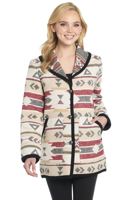 Quick view Choose Options Cripple Creek - CR15549-F24 Navajo Blanket Coat Accented W/ Contrast Trimmings And Metal Buttons (CR15549-F24) MSRP: blue Was: Now: $114.99